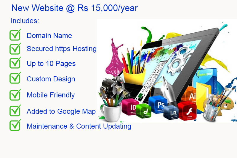 New Website - Rs 15,000/Year includes domain name, secured https hosting, website design and maintenance including content updating.
